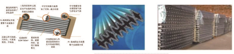 過濾精度高、過濾面積大、耐酸、堿能力強、機械性能優異、初裝結構緊湊、自清理能力強、壓力損失待定、粉塵捕捉效率高、優異的耐濕性、超長的使用壽命等諸多優點。