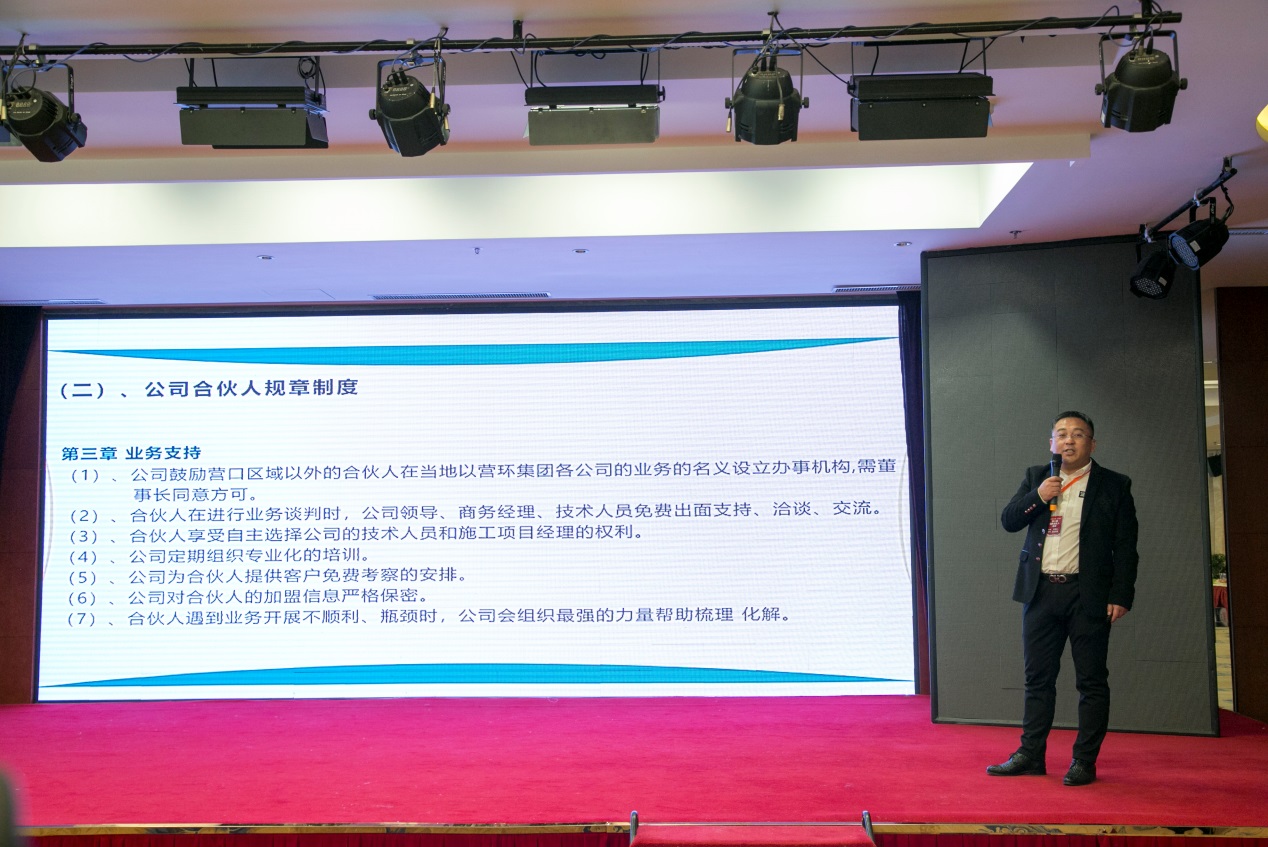 營口市環境工程開發有限公司賈喜東商務副總做《如何輕松達到事業另一個頂峰》報告,報告中就如何尋找項目、如何提高項目成功率及如何跟蹤已簽約項目、讓老客戶再次購買和轉介紹,進行分析講解。
